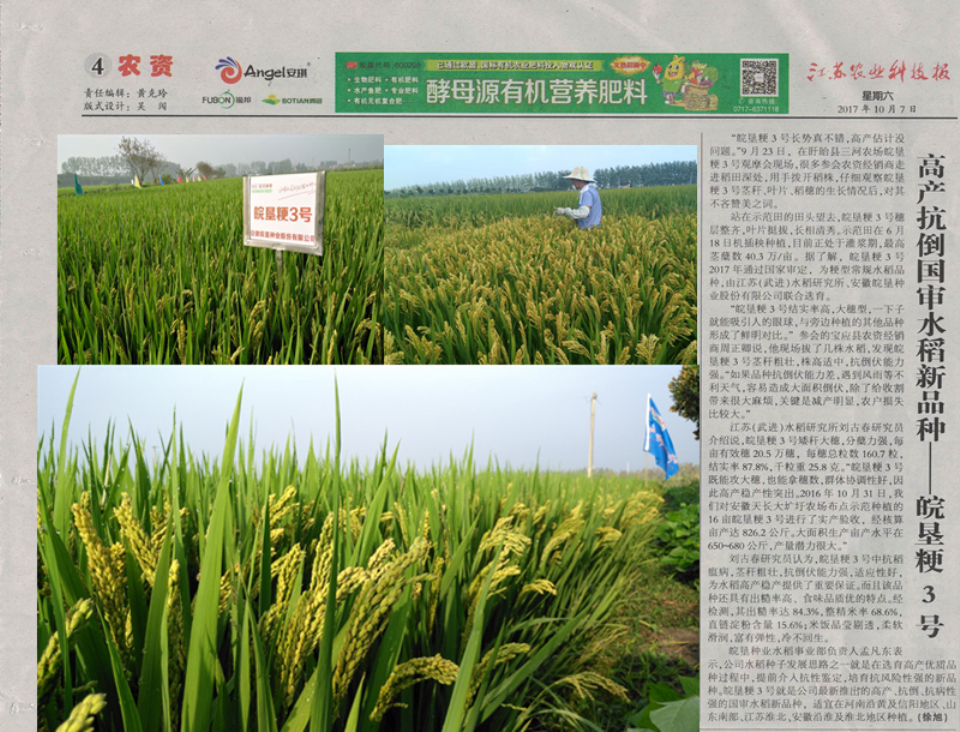 品種名稱:皖墾粳3號(hào)
