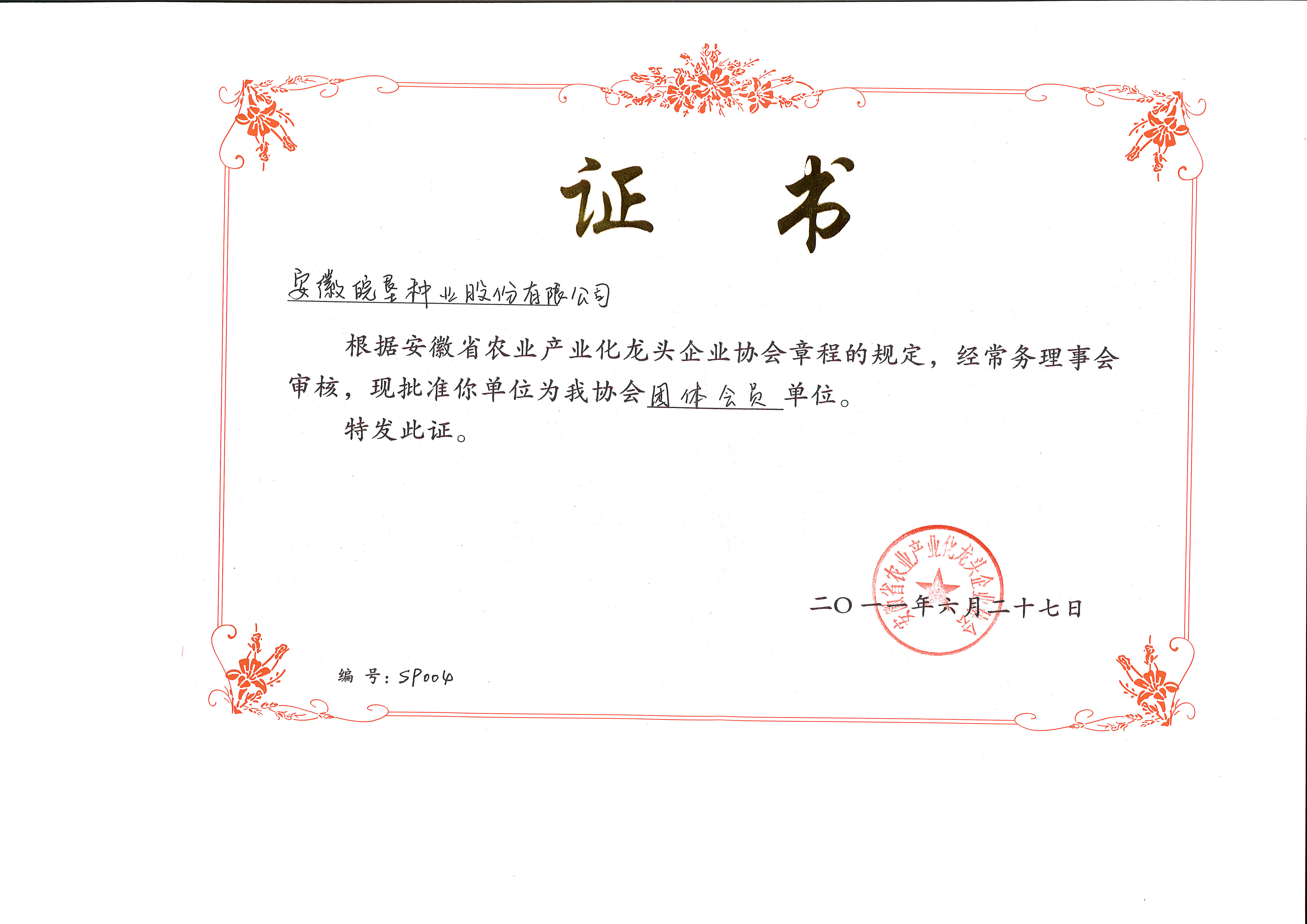 安徽省農(nóng)業(yè)產(chǎn)業(yè)化龍頭企業(yè)